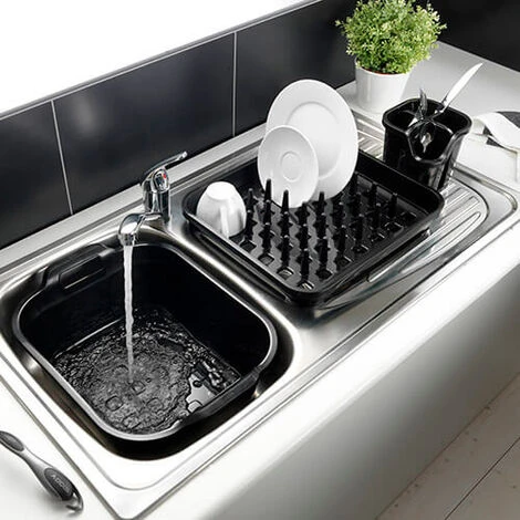 The sturdy plastic construction and space saving design features drainage holes in the base for quick drying of cutlery.
