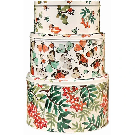 Measurements – Large Tin: 14.5 (H) x 24.5 (Dia)cm, Medium Tin: 12 (H) x 22.5 (Dia), Small Tin: 9 (H) x 20 (Dia)cm.