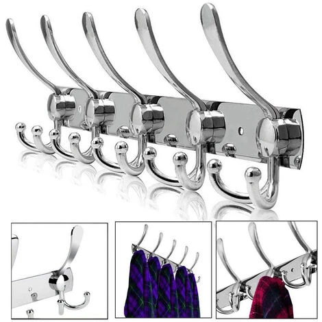 Package content: 1*stainless steel hook^1.【High Quality Material】The wall mounted coat racks are made of stainless steel construction will keep it from corrosion or getting rusty. Each coat hook featuring long upper arm and non-slip ball tips, so can easily hold up to 30 lbs. Sturdy and durable, well-constructed for longer use.^2.【Save Space and Multi-Functional】 The wall coat hook design with 5 tri hooks can , can be installed anywhere you want in your house to save space. Perfect for hanging coats, hats, scarves, towels, robes, purses, umbrella, keys etc in kitchen, bedroom, closets, bathroom, mudroom, garage, entryway.^3.【Intimate Design】Each coat hook featuring long upper arm and non-slip ball tips. And you can reach for and grab any item easily without disturbing the other items. Smooth edges can prevent accidental falling out and scratched effectively. Heavy duty coat hooks size is 40*4.2cm, design clean and simple.^4.【Easy to Install】All hardwares required for installation is included, and also equipped with extra screws for replacement. The coat hooks are easy to attach to the wall, package including the screws and anchors, once secured into the wall, the anchors hold up perfectly.