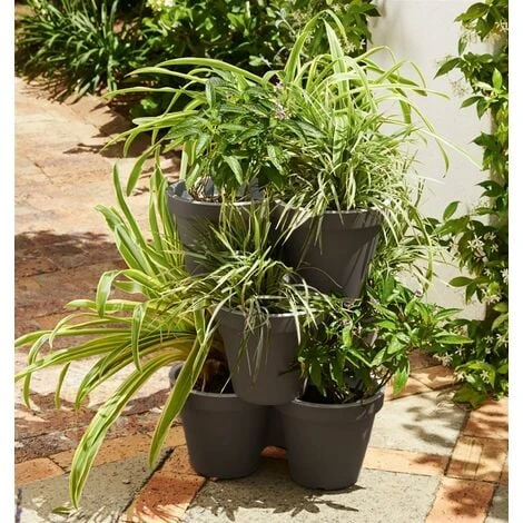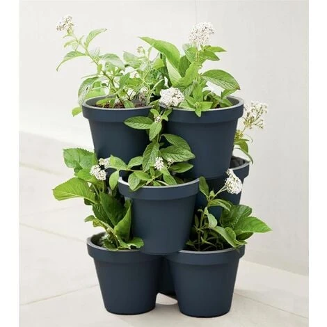 Manufactured from tough polypropylene, the 20cm deep 3 layers of anthracite-coloured pots provide up to 1 metre of growing height and each tier contains almost 34 litres of compost, giving strawberries, herbs, salads, bedding plants or foliage plants plenty of room to stretch out their roots.