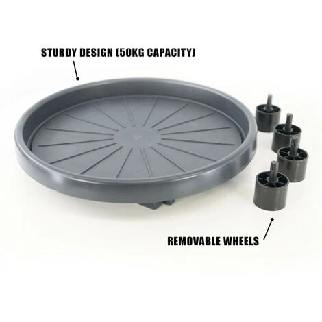 Round shape pallet, suitable for multi-shapes of plant pots. And it has the function of water storage, prevent the floor from wetting when you are watering.This plant trolley can be widely used indoor and outdoor for moving garden pots, heavy plants, large potted trees, large vases, whiskey barrels, or heavy trash cans and can protect your floor from being worn out.