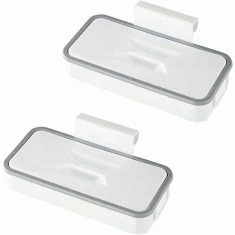 BUCKET DETAILS: 2x Plastic Hanging Kitchen Trash Cans (White, Grey) The hanging trash can won’t waste valuable space on your kitchen floor. Easily attaches to the outside of cabinet doors.