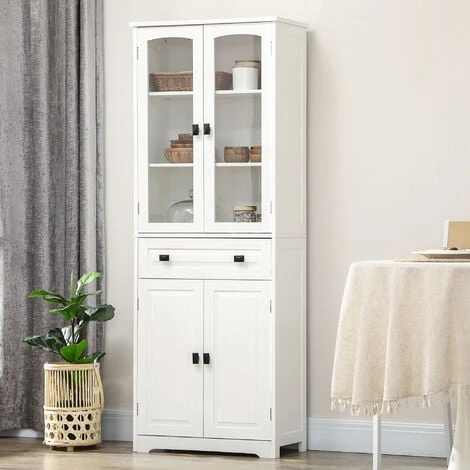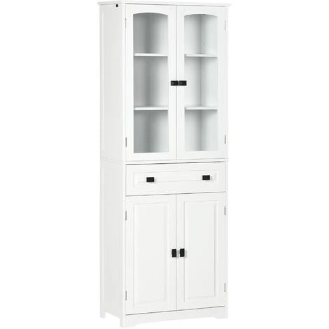 five adjustable shelves to fit into differently-sized pieces. Made from particle board for a durable structure, with anti-tipping straps included for safety. A white design, with black handles for a stylish monochrome look.
