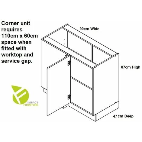 Total corner unit size of 110cm x 60cm will be achieved once 60cm worktop is mounted.