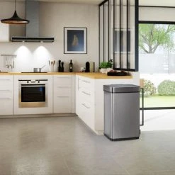 Relaxdays Sensor Waster Bin, 60 L Trash Can, Stainless Steel Kitchen Garbage Pail With Motion Sensor, Battery-Operated, Grey