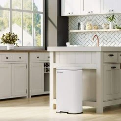 Songmics Kitchen Rubbish Bin, Pedal Trash Can 30L, With Plastic Inner Bucket, Hinged Lid, Soft Closure, Odour Proof And Hygienic, White LTB03WT