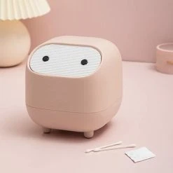 Tinor Mini Countertop Trash Can With Lid, Cute Plastic Trash Can For Desk, Bathroom, Table Or Coffee Table – Throw Cotton Rounds, Makeup Sponges (Pink)