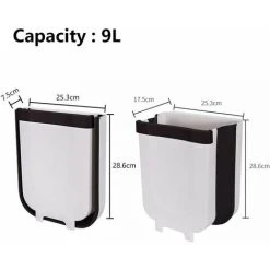 TUMALAGIA Foldable Trash Can, Hanging Design, For Kitchen, Closet, Office, Bathroom, Bedroom, Car, Home Office 9L (White)