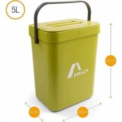 TUMALAGIA Kitchen Compost Bin – Plastic Kitchen Composter For Organic Waste – Table Top Bin With Lid – Small Under Sink Door Bin – Odor Proof – Green, 5L