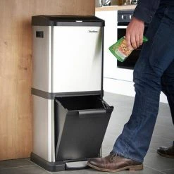 VonHaus Recycling Pedal Bin For Kitchen Waste – 34L Rubbish Capacity – Vertical Double Recycle Compartment Design – Robust Metal Body With Stainless Steel Finish