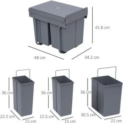 HOMCOM Recycle Waste Bin 40L Sorter Kitchen Recycle Waste Bin Pull ABS Silver