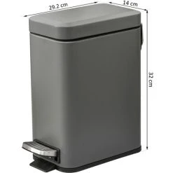 HOMCOM 5L Rectangle Compact Bin Steel Body Inner Bucket Quiet-Close Lid W/Pedal Grey