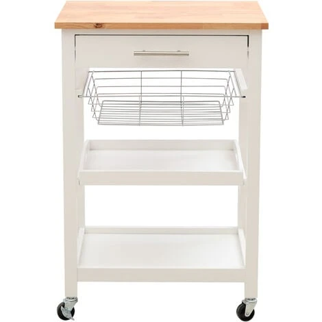 including a tray-like shelf, a basket and a drawer. The clean and muted white