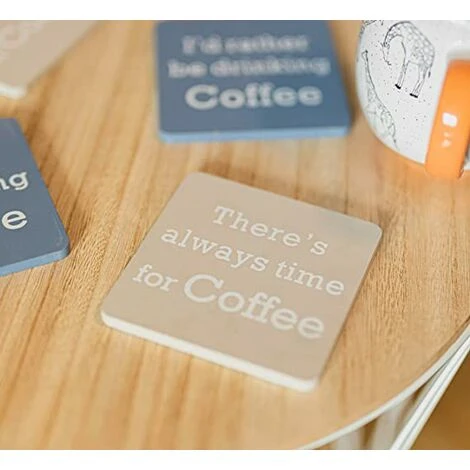 Protect your tables with these Novelty Coasters! These ‘Id Rather Drink…’ coasters are of high quality and durable as well as re-usable! The set of 4 add an element of witty fun to the party with what drink your having either it be tea, coffee, a cheeky cocktail, prosecco or a G&T. These make great gifts for house warming, birthday, hostess, or just for someone who loves to drink! All 4 coasters come together ties in a little bow so looks perfectly gift wrapped! The coasters are reversible & have a saying on each side which all relate to coffee,prosecco, gin & cocktails! The Sayings are: – I’d rather be drinking cocktails -There’s always time for coffee -I’d rather be drinking coffee -There’s always time for G&T -I’d rather be drinking prosecco – There’s always time for wine Dimensions: 10cm x 10cm