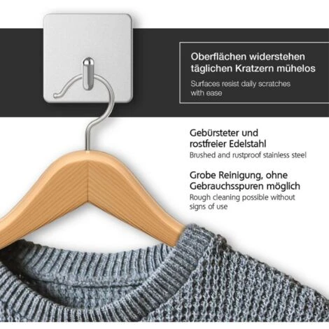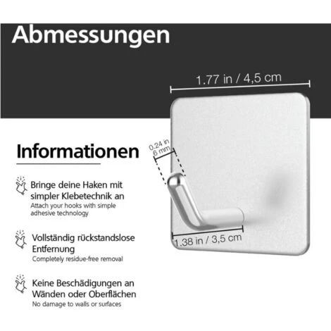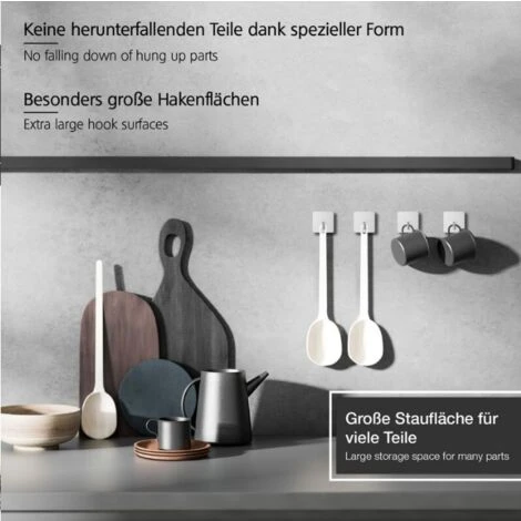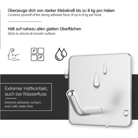 WITHOUT DRILLING – Attach your hooks quickly and easily using simple adhesive technology | No damage to surfaces thanks to simple adhesion – Completely removable without leaving residue