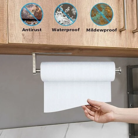 Brushed Stainless Steel: The wall paper towel holder is made of SUS 304 brushed stainless steel which is durable against corrosion and rust. The kitchen towel holder can resist daily scratches, corrosion and tarnishing. The adhesive paper towel holder is ideal for humid environments such as the bathroom and kitchen.