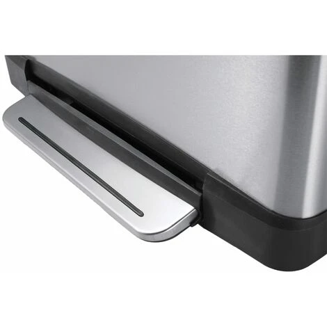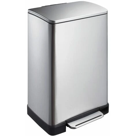 The matte silver E-Cube pedal bin from EKO is a stylish rectangular rubbish bin with an extra wide pedal and a 40 L plastic inner bucket.