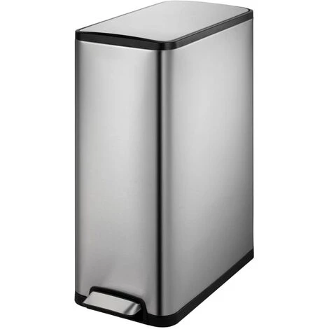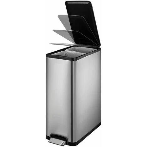 The matte silver 40 L Ecoslim step bin from EKO is a stylish rubbish bin with two 20 L plastic inner buckets for waste separation.