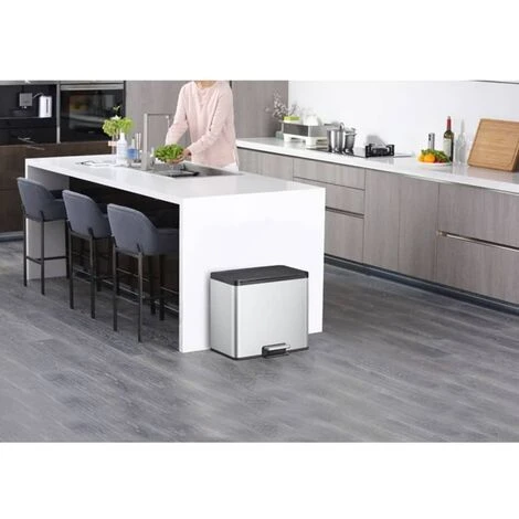 It is equipped with a soft closing lid and three 9 L plastic inner buckets for separating waste. The stay-open function locks the lid for easy cleaning of the rubbish bin or changing the waste bag.