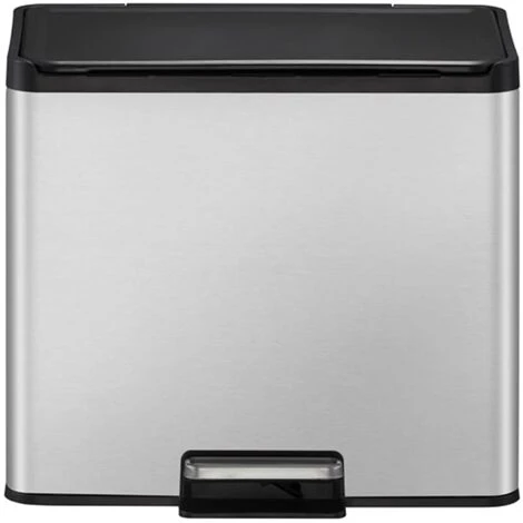 The matte silver 27 L Essential pedal bin from EKO is a stylish rectangular waste bin made of brushed stainless steel with fingerprint proof coating and plastic lid.