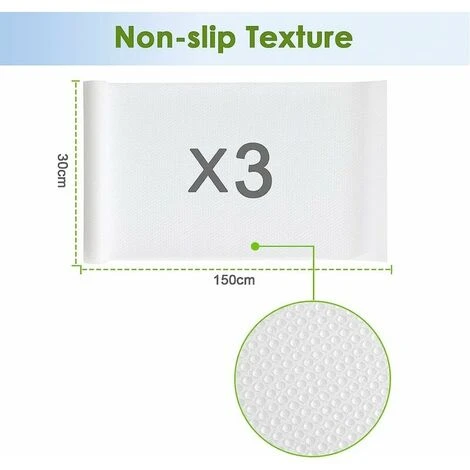 【Easy Installation】 11.8 inches x 59 inches (150 x 30 cm). The cabinet mat is available in the most popular pre-cut sizes for easy installation. For unique sizes and shapes, you can simply cut the liner with scissors. Simply place the liner in your drawer or closet and cut off the excess material.