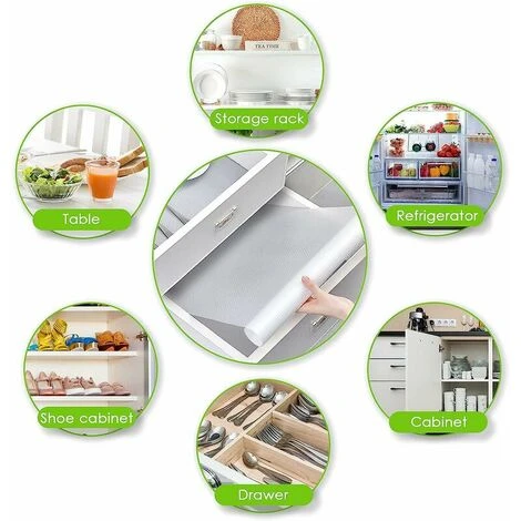 【Multi-Function】The drawer liner can be used with all shelves and storage areas in the home. Perfect for refrigerator shelves, cabinets, cupboards, pantries, cupboards, drawers, dining tables, counters, floor mats, coasters and table mats, desk, the car, etc.
