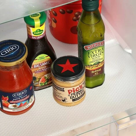 【Product Features】The fridge mat is non-adhesive, waterproof, oil-proof, non-slip, no stains, no mould. Clear convex dots on the top prevent items from slipping, while a smooth bottom prevents dishes and other fragile items from shifting.