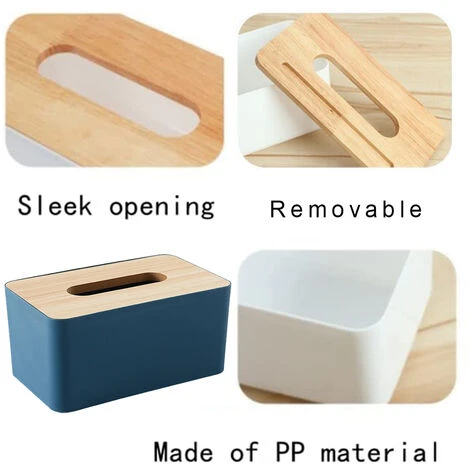 3.Easy to set up,Easy to clean: Holds most standard wood rectangular tissue boxes. Wide opening allows for effortless access to tissues, so use it when you need to!