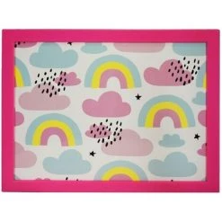 MTS Large Wooden Soft Padded Cushioned Bean Bag Lap Dinner Laptop Food TV Tray (Rainbow)