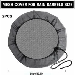 JOORRT 2 Pcs Rain Barrel Net, Ø 60 Cm Rain Barrel Cover With Drawstring, Adjustable Protective Net, Protection Against Leaves, Mosquitoes