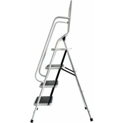 Home Discount 3 Step Ladder With Handrail & Anti-Slip Mat Iron Frame Home DIY Stool