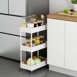 Livingandhome 3 Tier Kitchen Trolley Cart Vegetable Fruite Storage Rack Shelf, White