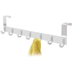 Devenirriche Door Hook Over The Door, Clothes Hooks Without Perforation Heavy-duty Organizer For Coat, Hat, Towel, Bag, Bathrobe, Umbrella - 7 Hooks, Aluminum, Reusable
