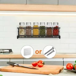 Devenirriche Kitchen Spice Rack, Metal Spice Rack Without Drilling, Kitchen Wall Spice Rack, Spice Rack For Spices Jars Kitchen Pantry Accessory Cupboard, 29x6x6cm (Black, 2 Pieces) - -
