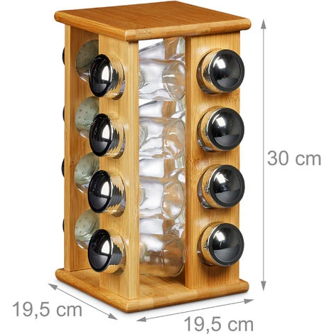• Lovely grained bamboo combined with the shiny jar lids turns the spice rack into an eye-catching piece for your kitchen
