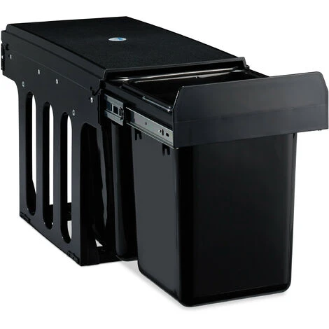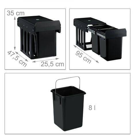 The practical built-in waste bin won’t get in the way in the kitchen. Space-saving, it can be fitted in the cabinet, for example under the sink, with the enclosed mounting material. Thanks to the easy-running telescopic rails, it can be pulled out completely. The waste pull-out is equipped with 2 bins, each with a handle, so that the waste can be sorted conveniently and the bins can be removed quickly. Made of plastic, the double waste bin is easy to clean.