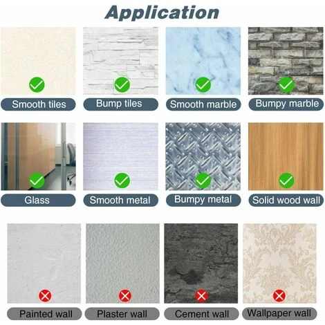 Only install it on smooth and flat surfaces such as wood, glass, marble, tile. Not suitable for wallpaper walls, rough surface walls or colored walls.