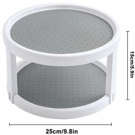 - 【Non-Slip Surface】 The two-tier turntable has a non-slip surface to ensure your items don’t not fall or slip. This non-slip surface is molded into the platform for durability and is very easy to clean and maintain.