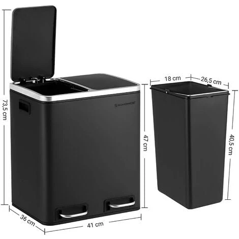 Recycling Can be Easy: This pedal bin comes with 2 sections to make separating your recycling a snap. The best part is that it can be done by simply stepping on the pedal to open the lid and throwing the rubbish in.