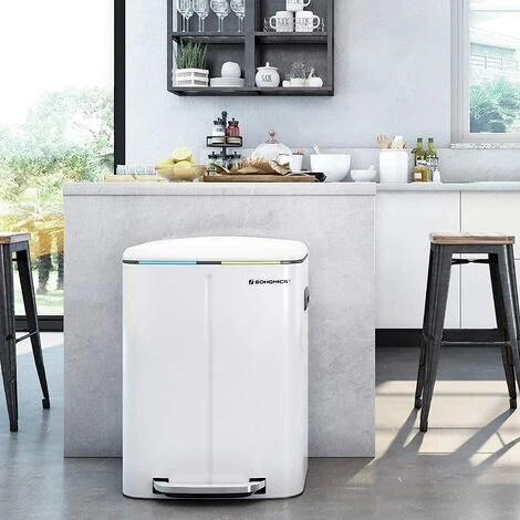 Recycling Can be Easy: With 2 sections side by side, you can sort the rubbish with a simple toss. All you need to do is to step on the pedal to open the lid, and now you have your hands free to throw away the recycling.