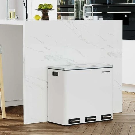 - WHAT YOU GET: A 54L rubbish bin with 3 sections, convenient pedals, and removable inner buckets for easy waste disposal and hassle-free recycling