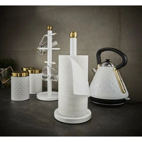 Clean up spillages with ease with the stylish Swan Gatsby Towel Pole. Its effortlessly simplistic yet chic design with matte black finishing and gold detailing, makes a stylish addition to any kitchen, and matches a range of kitchen decors. Designed to keep your kitchen rolls clean, dry, and close to hand. This towel pole from Swan provides enough space for any size or weight of kitchen roll and the stainless-steel base allows for convenient one-handed use, ensuring the pole doesn’t slip or move when ripping off sheets. Simple to use, just slide the kitchen roll over the top of the pole. Its sturdy stainless-steel design makes this towel pole durable and easy to clean – just wipe down with a damp cloth. Matching items are available as part of the Swan Gatsby range. Inspired by the chic style and glamour of 1920’s design, the Swan Gatsby range is perfect for the style conscious homeowner.