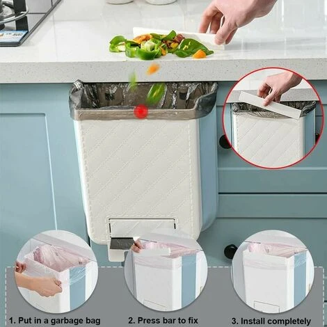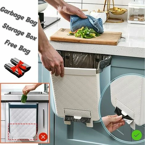 【Wide Application】Foldable, hanging, small, easy to move and carry, very convenient to use. It can be hung on the kitchen cabinet door, drawer, car or any other place for garbage storage. Perfect for kitchen, living room, bedroom, bathroom, office, garage, restroom, automobile, etc. There is a fixed bracket at the bottom of the under sink door trash can, if you need it, you can put it on the floor.