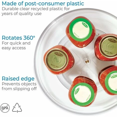 STABLE MATERIAL: Thanks to the robust plastic used, the turntable is ideal for use at home. Spices, being a spice tray; Cheese or as a rotating make-up storage.