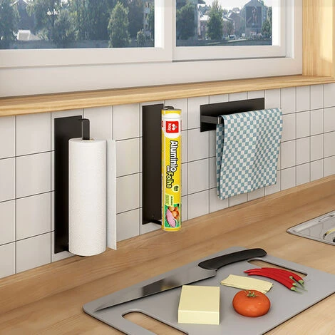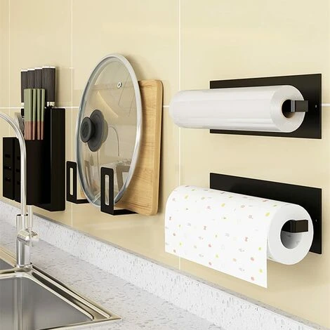 Self-adhesive paper roll holder: kitchen paper roll holder without a hole and no drilling required. The high performance adhesive keeps the roll holder firmly to the smooth wall or cabinet surface, which can be placed anywhere. horizontally or vertically, saving kitchen space.