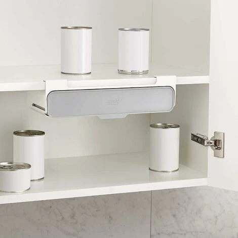 Unique design utilizes unused space under the shelf