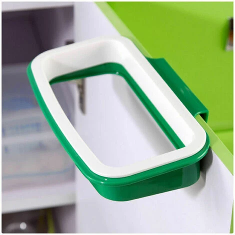 Product name: hanging trash bag holder Main material: Platisc (PP) Primary colors: green and white Inner shell size: 21cm*10cm*2cm Outer shell size: 22cm*10.2cm*3cm; Weight: 120g Style: single hook Applicable object: general