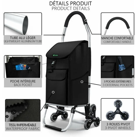 • The 6 high-quality wheels make it easy to manage even on uneven surfaces and steps. The shopping cart can be push or pull, and the non-slip sponge handle is very comfortable.