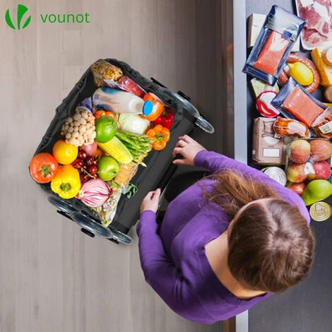 • VOUNOT Folding Shopping Trolley On 6 Wheels, Aluminium Lightweight Shopping Cart With Insulated Cooling Bag, 50L, Black VOUNOT Folding Shopping Trolley On 6 Wheels, Aluminium Lightweight Shopping Cart With Insulated Cooling Bag, 50L, Black £25.19