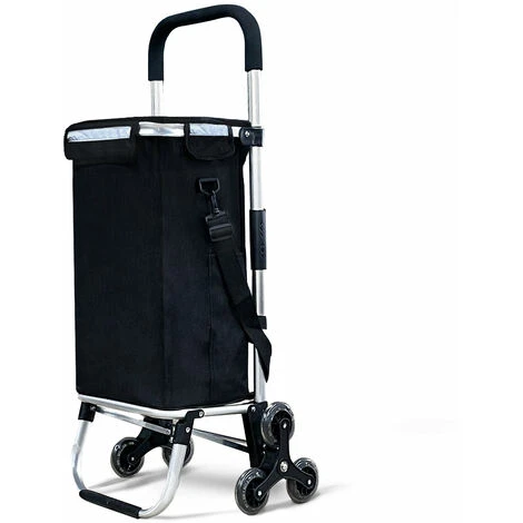 VOUNOT Folding Shopping Trolley On 6 Wheels, Aluminium Lightweight Shopping Cart With Insulated Cooling Bag, 50L, Black -Vonshef shop 36257736 2